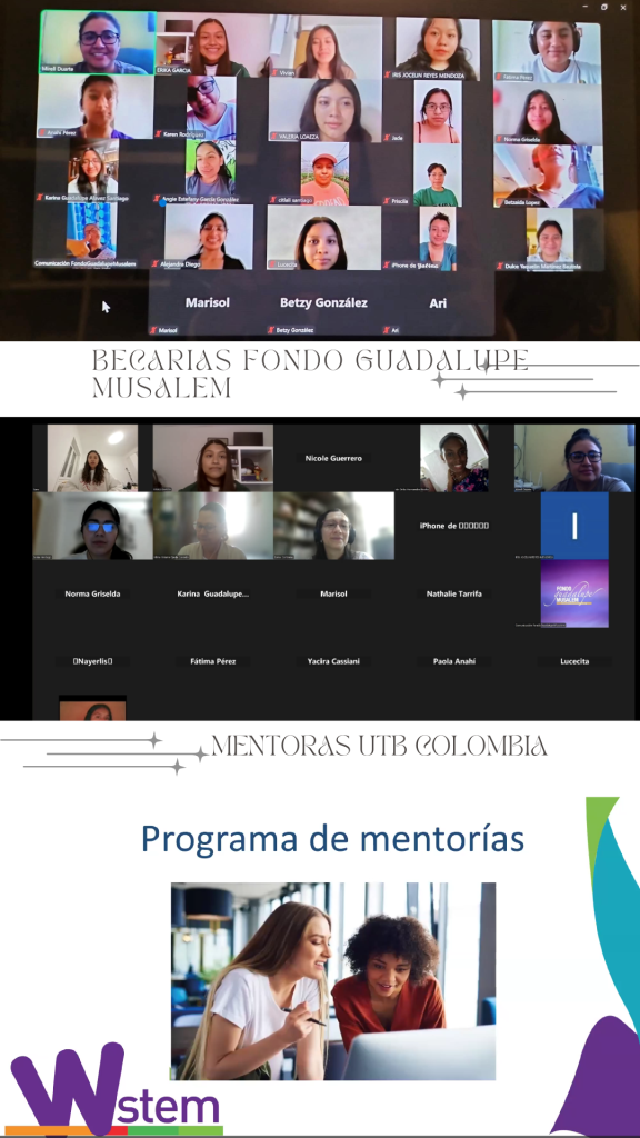 Durante el encuentro se compartieron las experiencias vividas por parte de egresadas que han sido miembros del proceso de mentorías en la UTB y se enfatizaron los beneficios de participar en estas propuestas. Como resultado, se estrecharon lazos y puentes por las becarias de Fondo Guadalupe Musalem A.C., alcanzando la cifra de 41 personas conectadas.