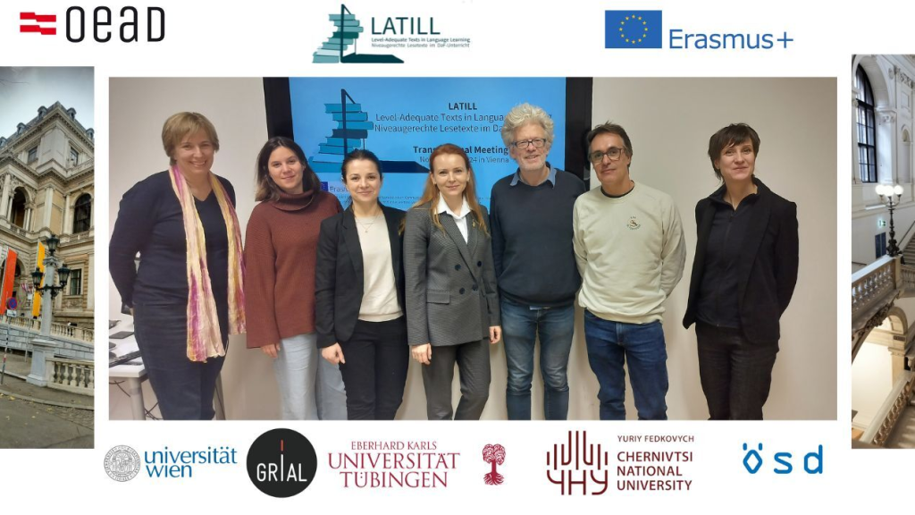 El 21 y 22 de noviembre, el equipo del proyecto LATILL (Level-Adequate Texts in Language Learning) se reunió en el Instituto de Germanística de la Universidad de Viena para avanzar en la evaluación y planificación de esta iniciativa. Los representantes del proyecto de los diferentes países participantes, Universidad de Salamanca, Eberhard Karls Universität Tübingen, Yuriy Fedkovych Chernivtsi National University y Verein Österreichisches Sprachdiplom Deutsch (OSD) , discutieron el progreso del proyecto y colaboraron en publicaciones conjuntas.